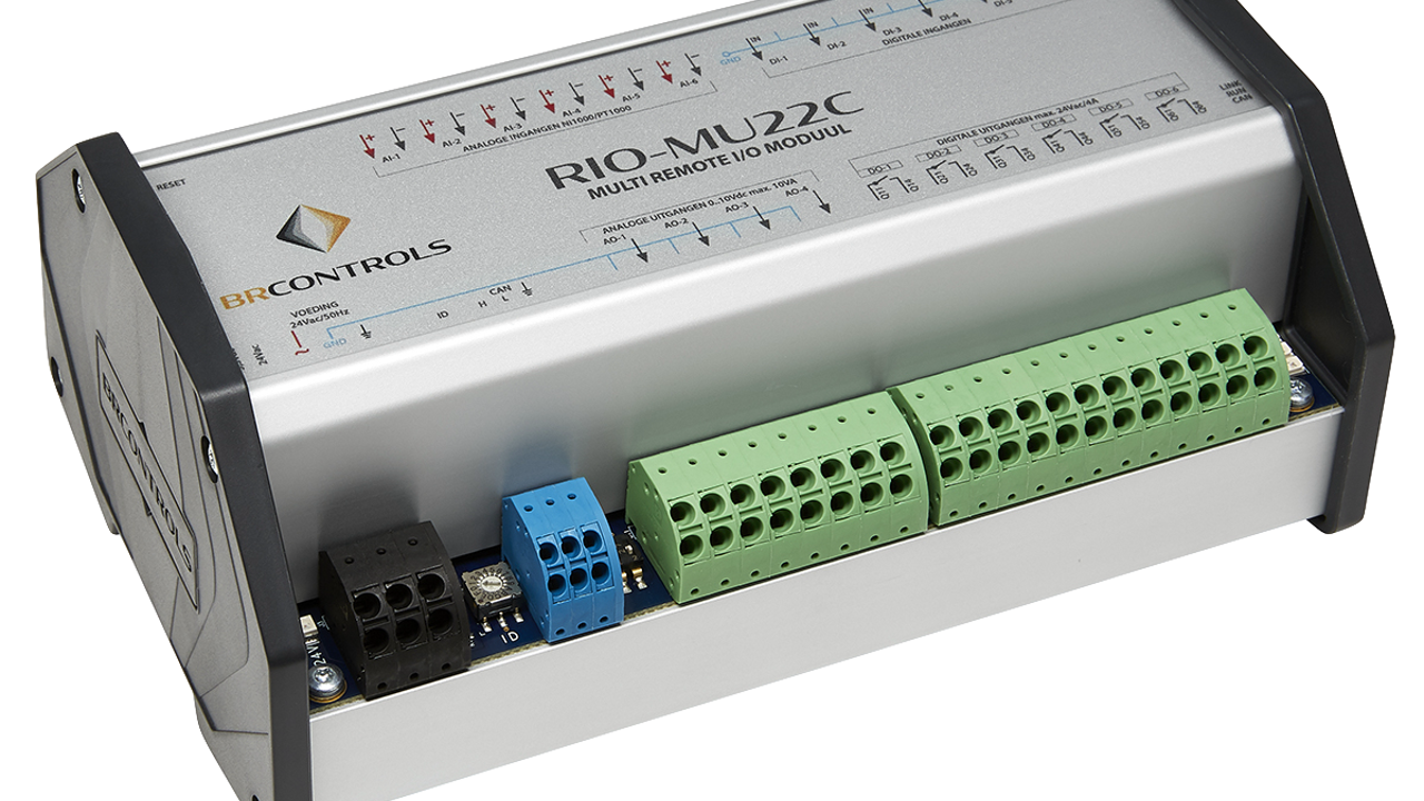 Op het RIO-MU22C Multi-I/O moduul worden alle metingen, sturingen en meldingen van de veldapparatuur aangesloten. Dit gebeurt centraal in de regelkast, maar ook decentraal, bijvoorbeeld in de buurt van de veldapparatuur. De RIO-MU22C Multi I/O moduul bevat meerder digitale en analoge ingangen (die flexibel uitgebreid kunnen worden) en kan aangesloten worden op onze systeemcontrollers. Samen sterk!