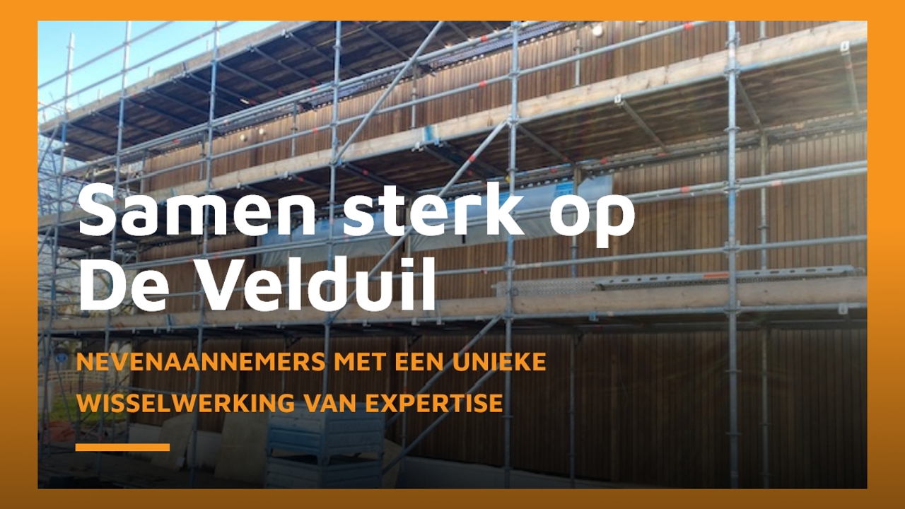 Bij de bouw van IKC De Velduil werken twee partijen nauw samen als nevenaannemers: JV Tech B.V. en R.A. van Leeuwen Bouwbedrijf B.V. Nevenaannemers werken naast elkaar, stemmen intensief af en zijn gezamenlijk verantwoordelijk voor een soepel bouwproces, een vorm die vraagt om vertrouwen, korte lijnen en vakmanschap. BRControls is als onderaannemer van JV-tech betrokken bij de meet- en regeltechniek.